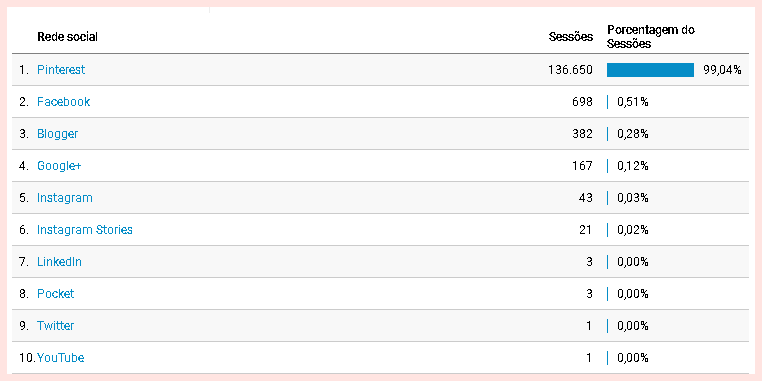 Atualmente, mais de 250 milhões de pessoas usam o Pinterest todos os meses. Este mês, até hoje 29/11, o Pinterest foi responsável por enviar 136.650 sessões para este blog.